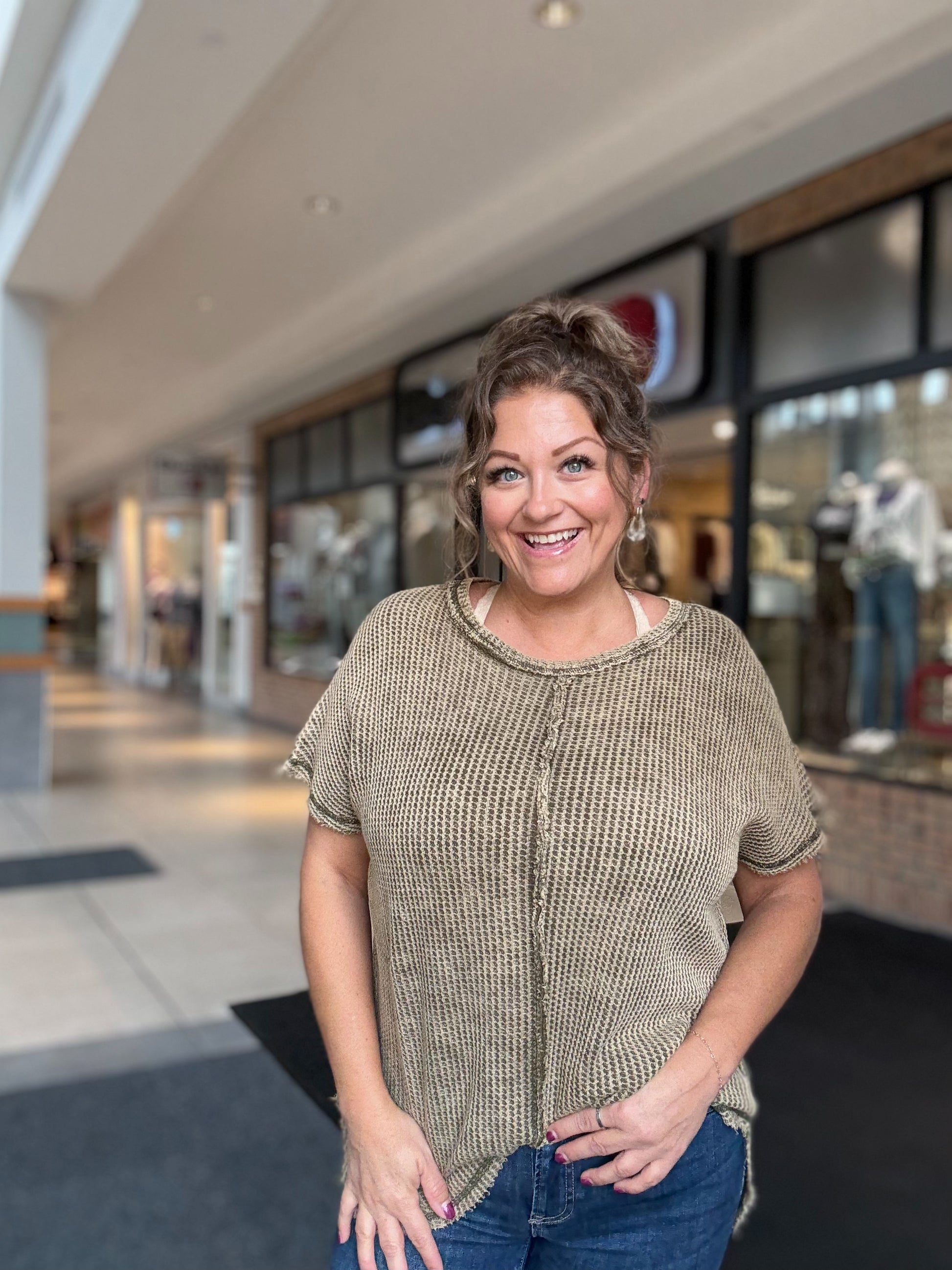 This adorably textured baby waffle top brings comfort and style to your everyday wardrobe! The perfectly washed fabric feels delightfully soft against your skin, while the short sleeves make it ideal for warm weather or layering. Pair with your favorite bottoms for an effortlessly cute look that's ready for whatever adventures your day holds!