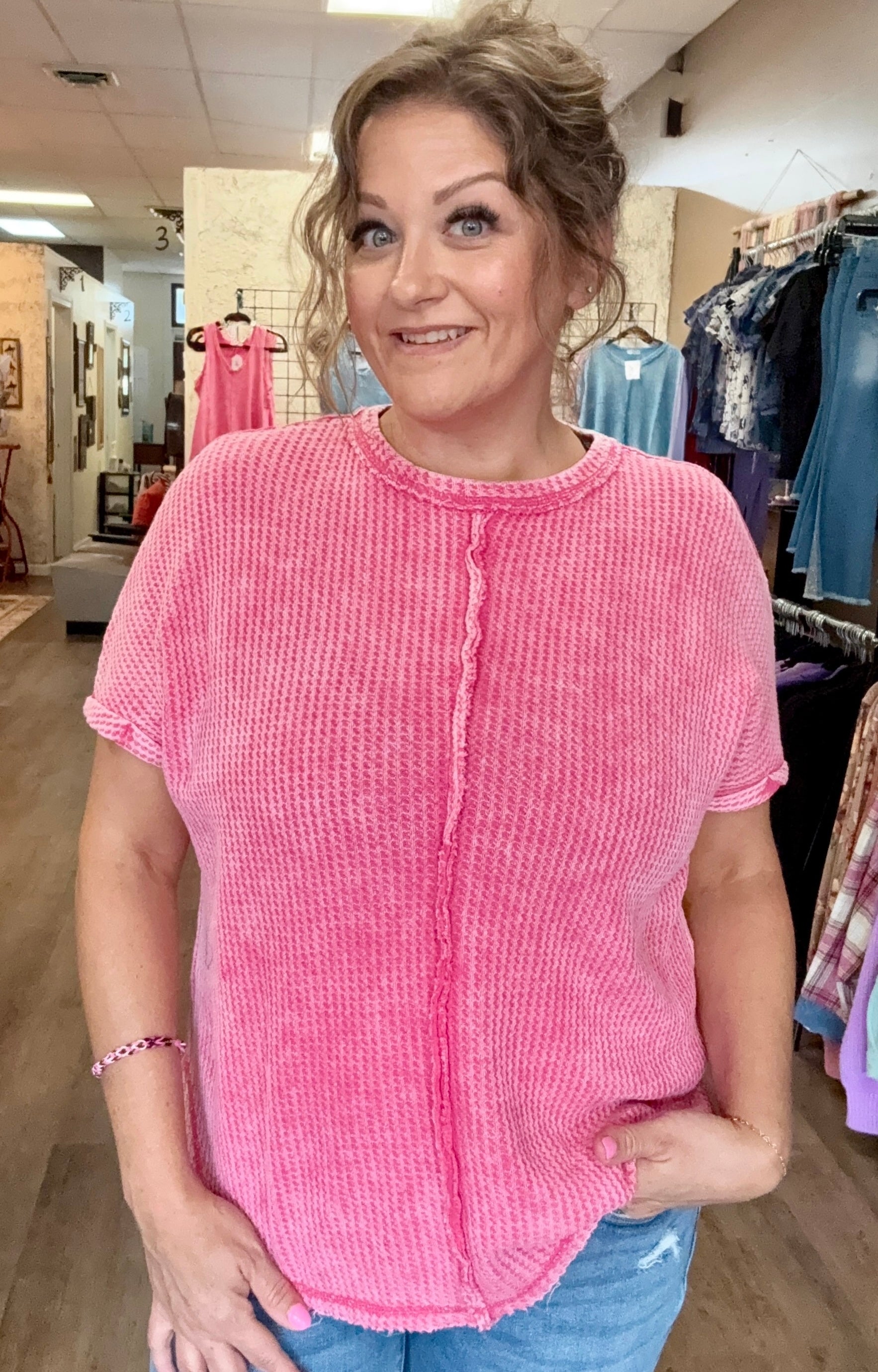 This adorable baby waffle short sleeve top brings texture and style to your little one's wardrobe! The lightweight waffle fabric keeps baby comfy during playtime or snuggles. Perfect for mixing and matching with any bottoms for an effortlessly cute outfit that's ready for adventures or naptime giggles.