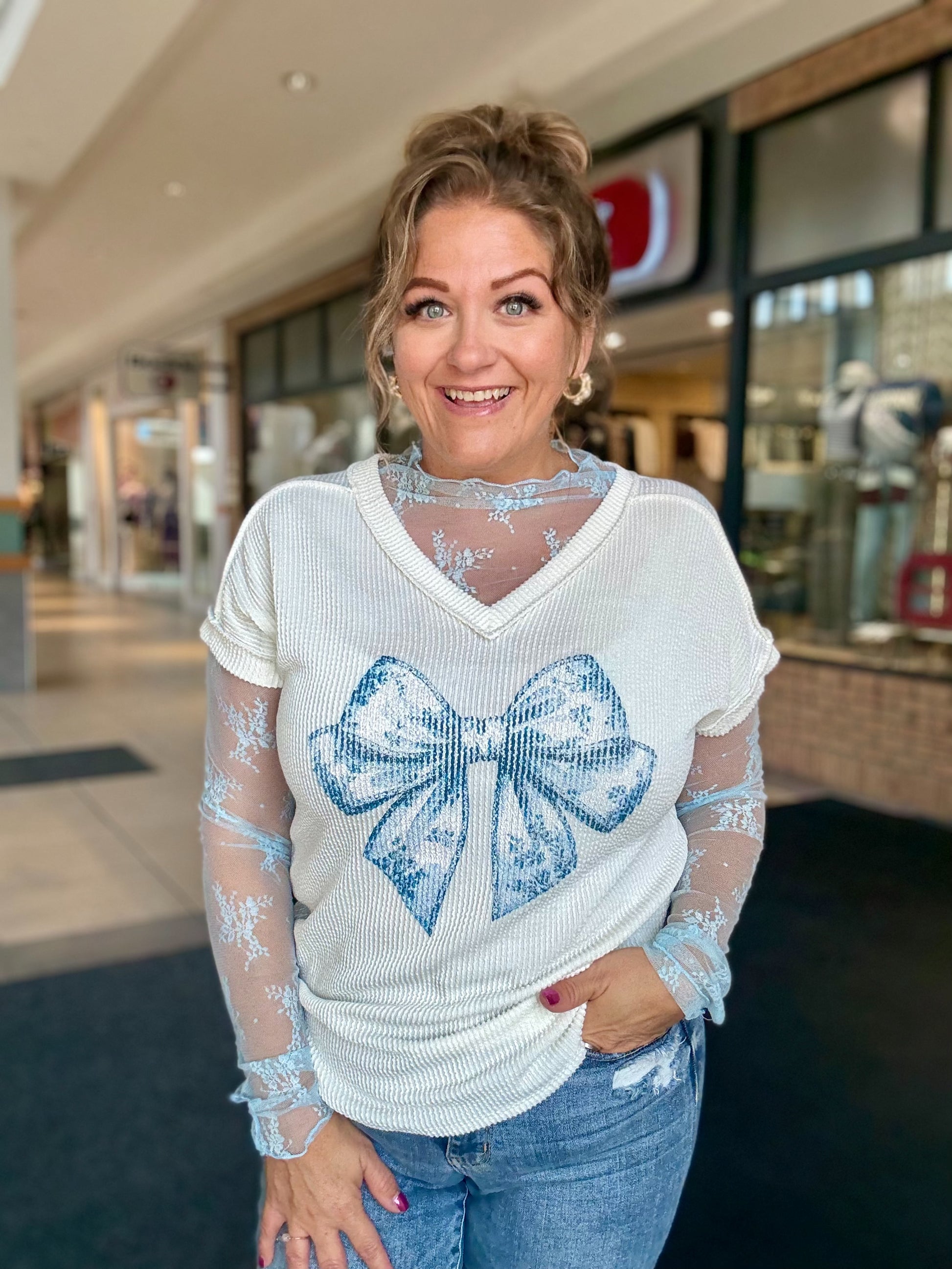 Add a touch of charm to your wardrobe with the Coquete Ribbon Lace Bow Graphic Top. Featuring a delicate lace bow detail, this playful top blends feminine elegance with casual comfort, making it perfect for brightening up any outfit. Whether paired with jeans or a skirt, it’s sure to bring a flirty, fun vibe to your look.