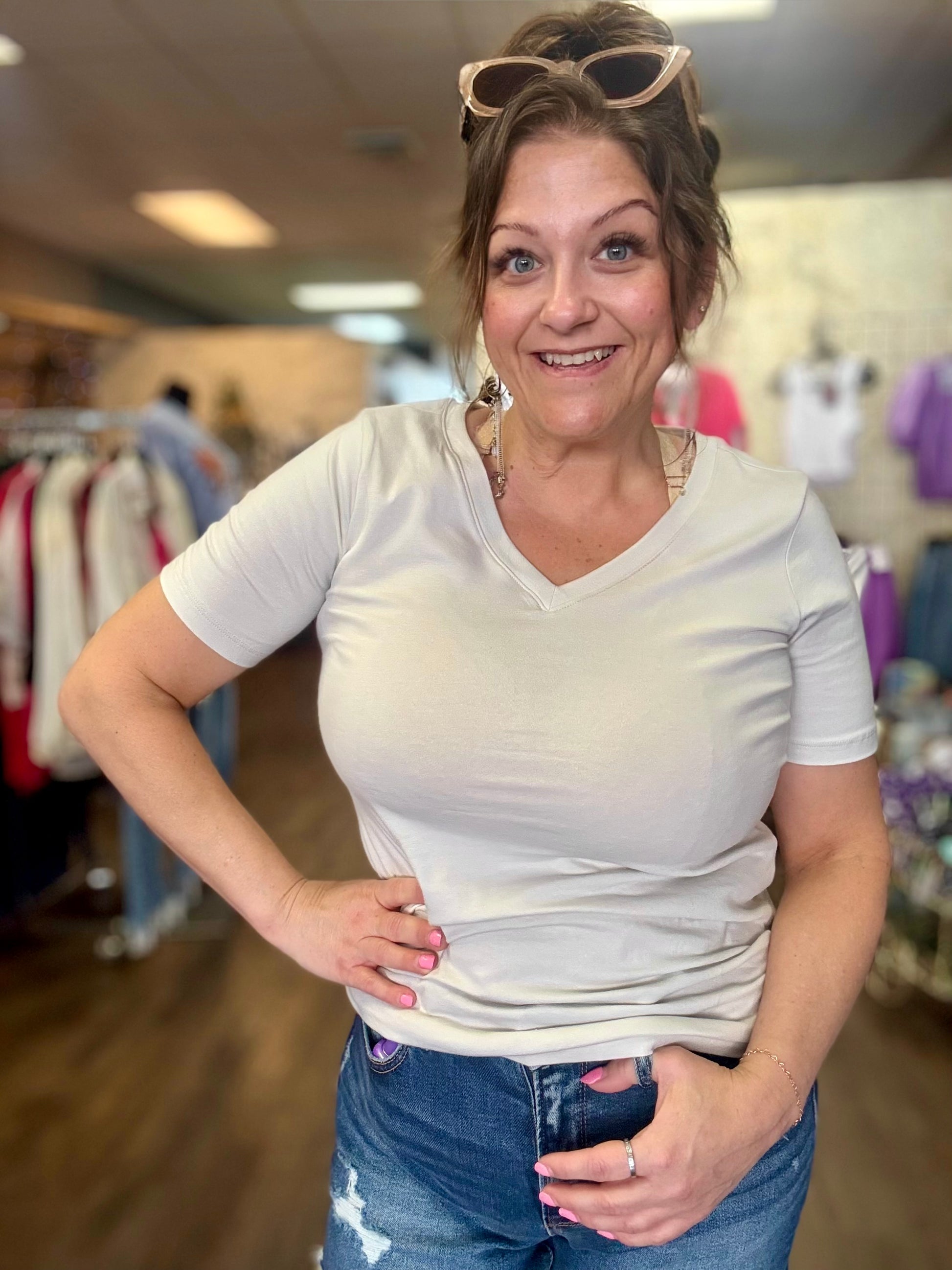 Stay cool and comfy in our Cotton V-Neck Short Sleeve t-shirts. Made with soft cotton, these shirts are perfect for everyday wear. Upgrade your wardrobe with this essential piece!