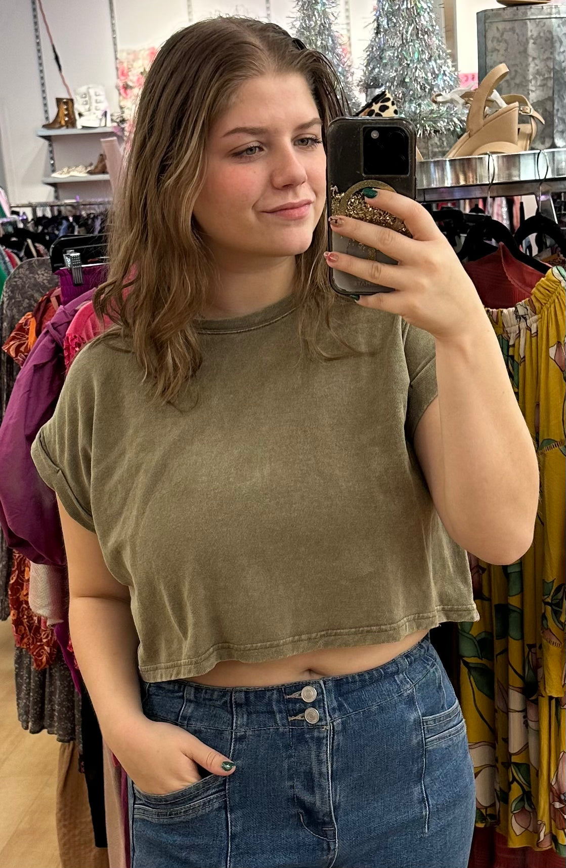 Cropped acid wash t-shirt