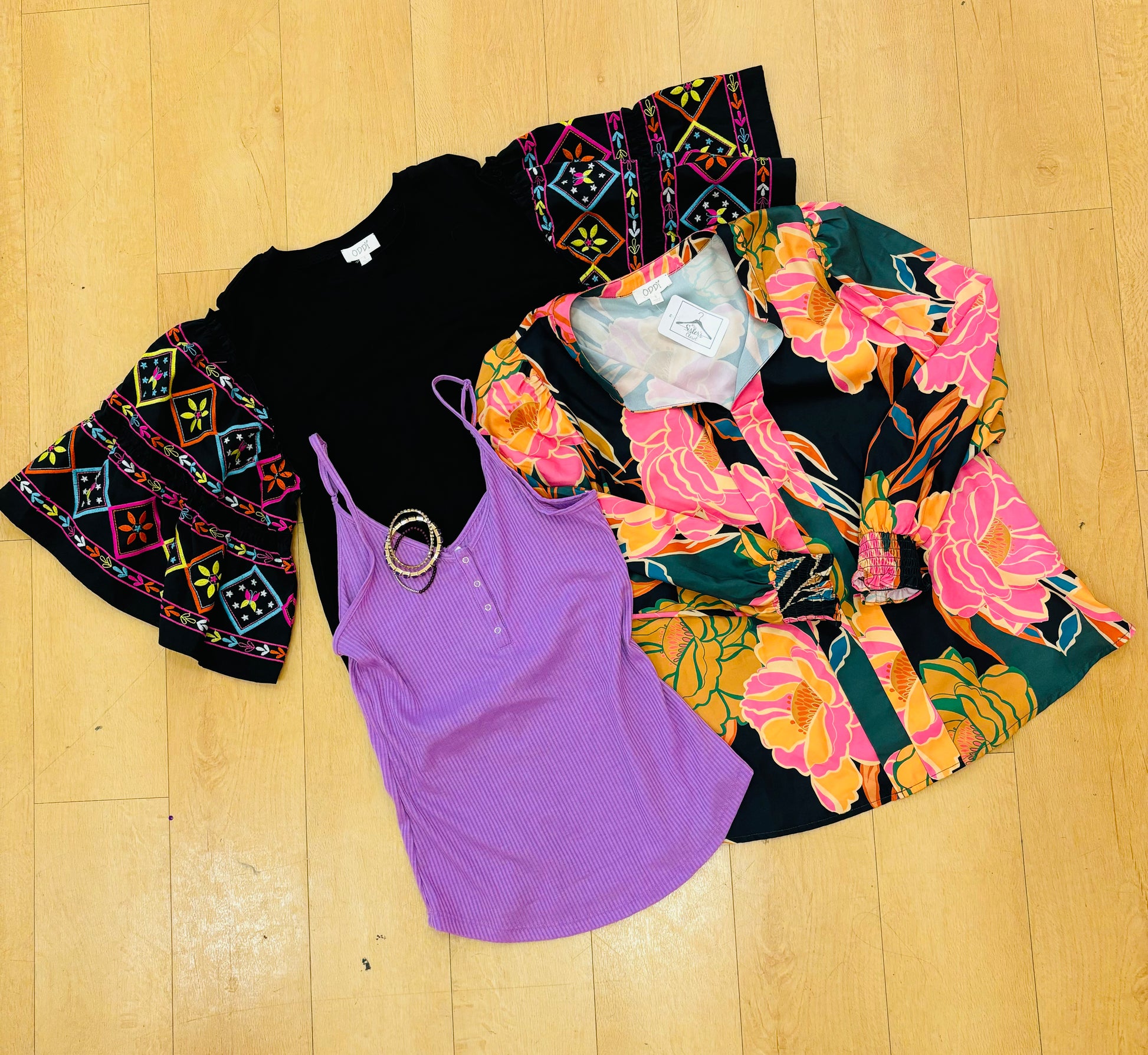 This is our new and improved grab bags with three clothing items+ for only $40! All new haven't been marked down items !!
