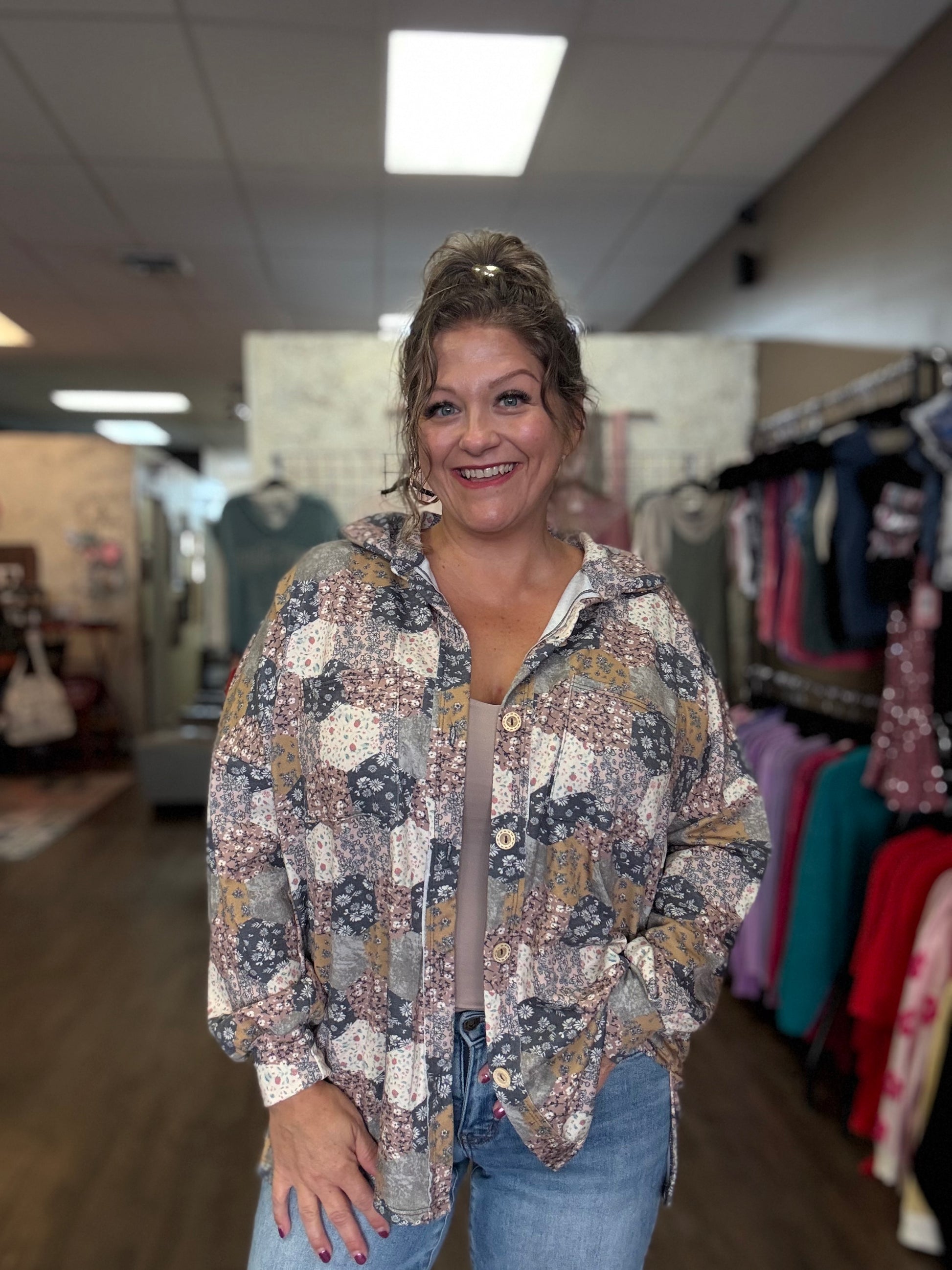 Add a splash of vintage charm to your wardrobe with this Retro Patchwork Print Shacket. Its playful patchwork design pairs classic patterns with cozy warmth, perfect for layering on cooler days. This shacket blends the best of a shirt and jacket, delivering comfort and style effortlessly wherever you go.