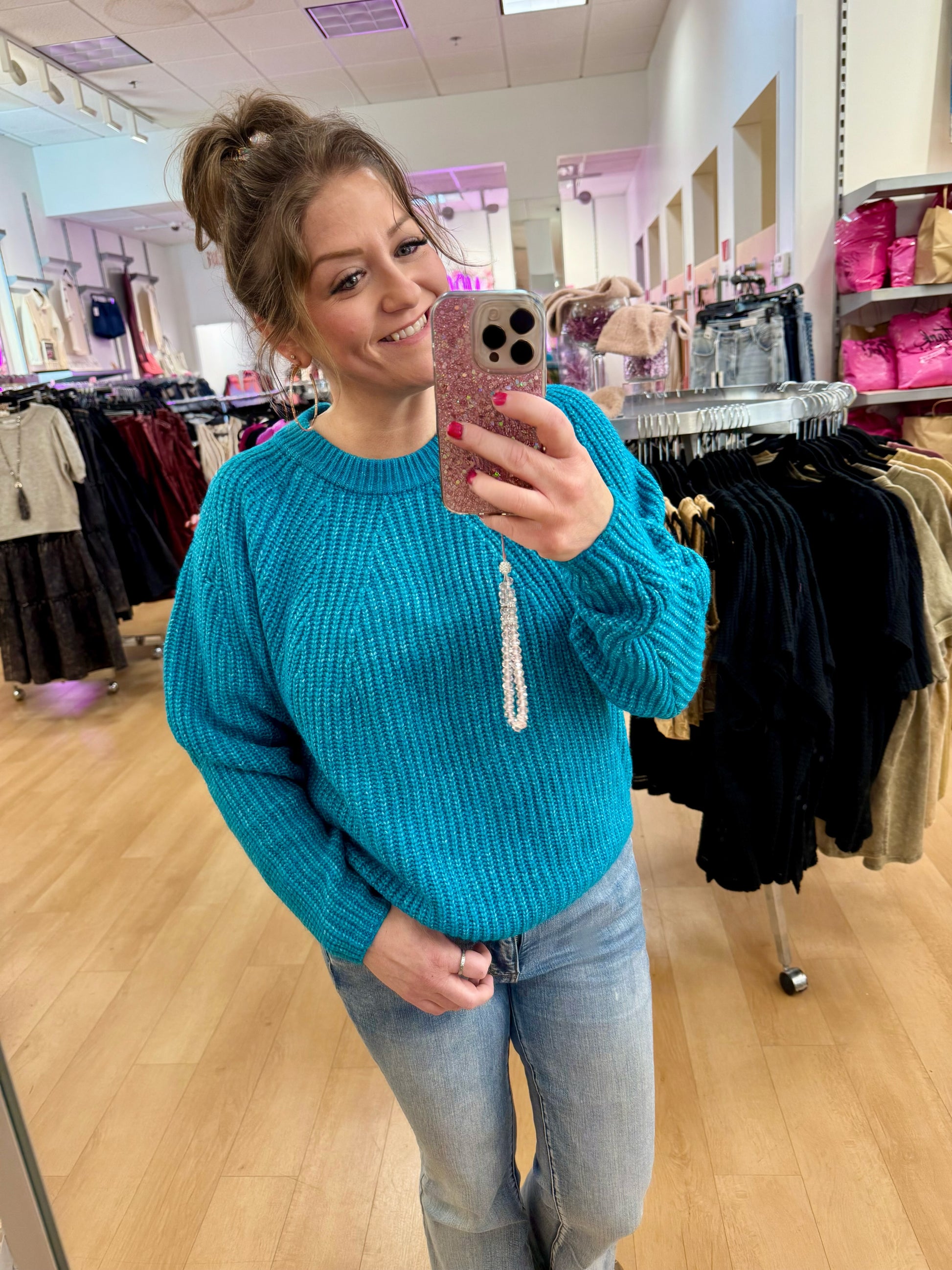 Stay light and breezy with our Round Neck Light Teal Sweater. Made with lightweight fabric, you'll look effortlessly cool and feel comfortable all day long. Perfect for layering or wearing on its own. (No itchy wool here!). Runs true to size.