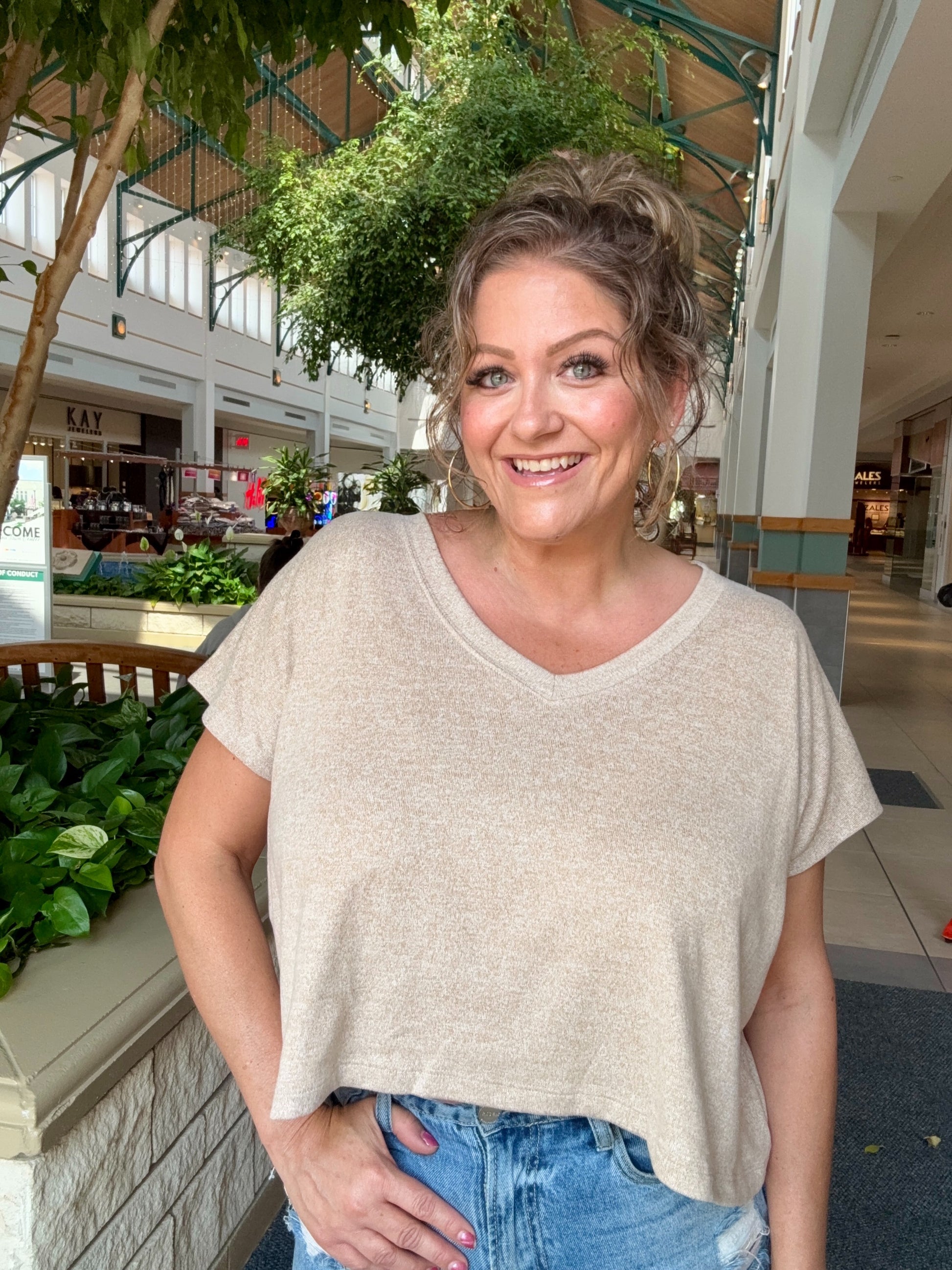Soft Melange V-Neck Drop Shoulder Cropped Top