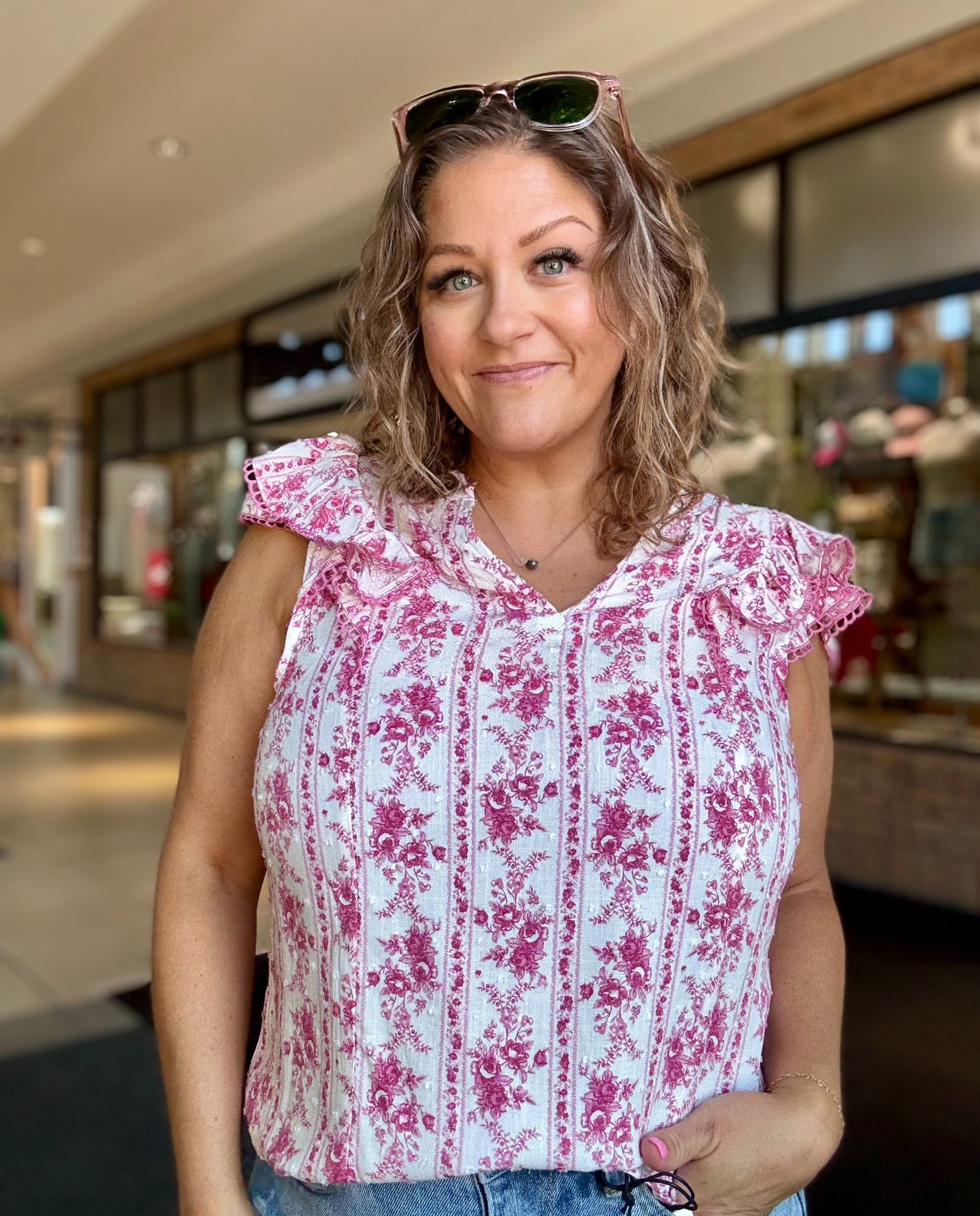 This playful top combines the best of both worlds with eye-catching stripes and delicate florals! The split neckline adds a touch of sophistication, while those adorable ruffle sleeves bring the fun. Perfect for dressing up your favorite jeans or pairing with shorts for a carefree summer look. Prepare for compliments!