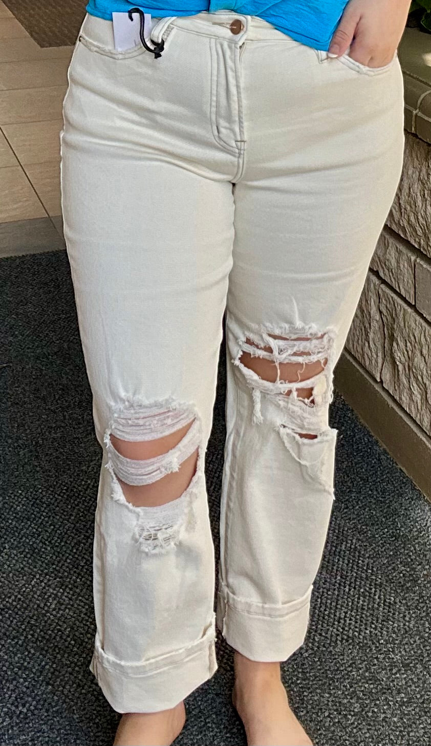 Get ready to rock the ultimate dad look with our Super High Rise Straight Dad Jeans! These cream-colored jeans will elevate your style game while keeping you comfy. So go ahead, channel your inner dad and make a statement without even trying. (Dad jokes not included)