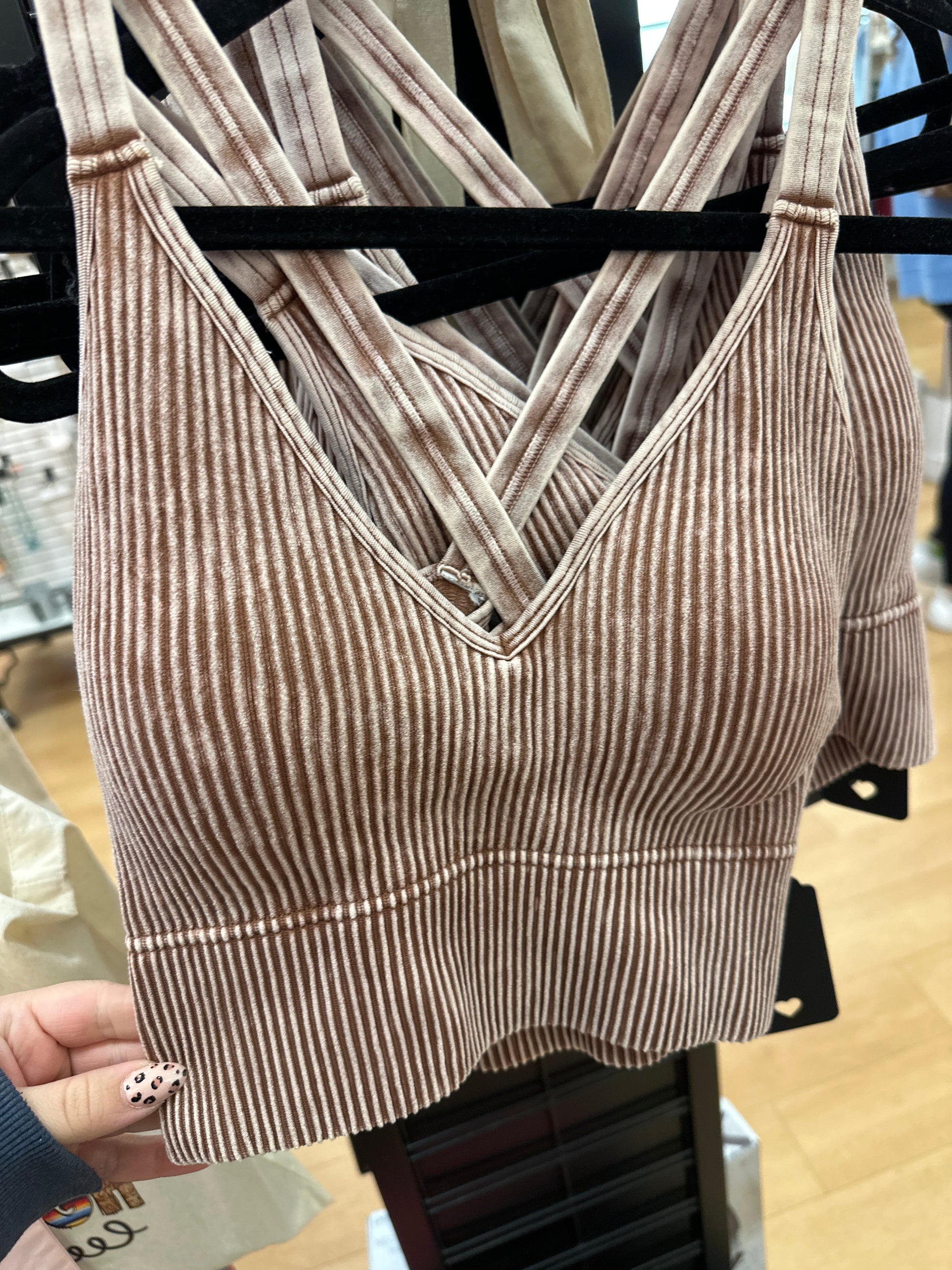 Get ready to flaunt comfort and style with this V-neck ribbed seamless crop bra tank! Its soft, stretchy fabric hugs your curves perfectly, while the padded cups add just the right lift. Whether you're lounging or layering, this playful piece brings cozy confidence to your everyday look.