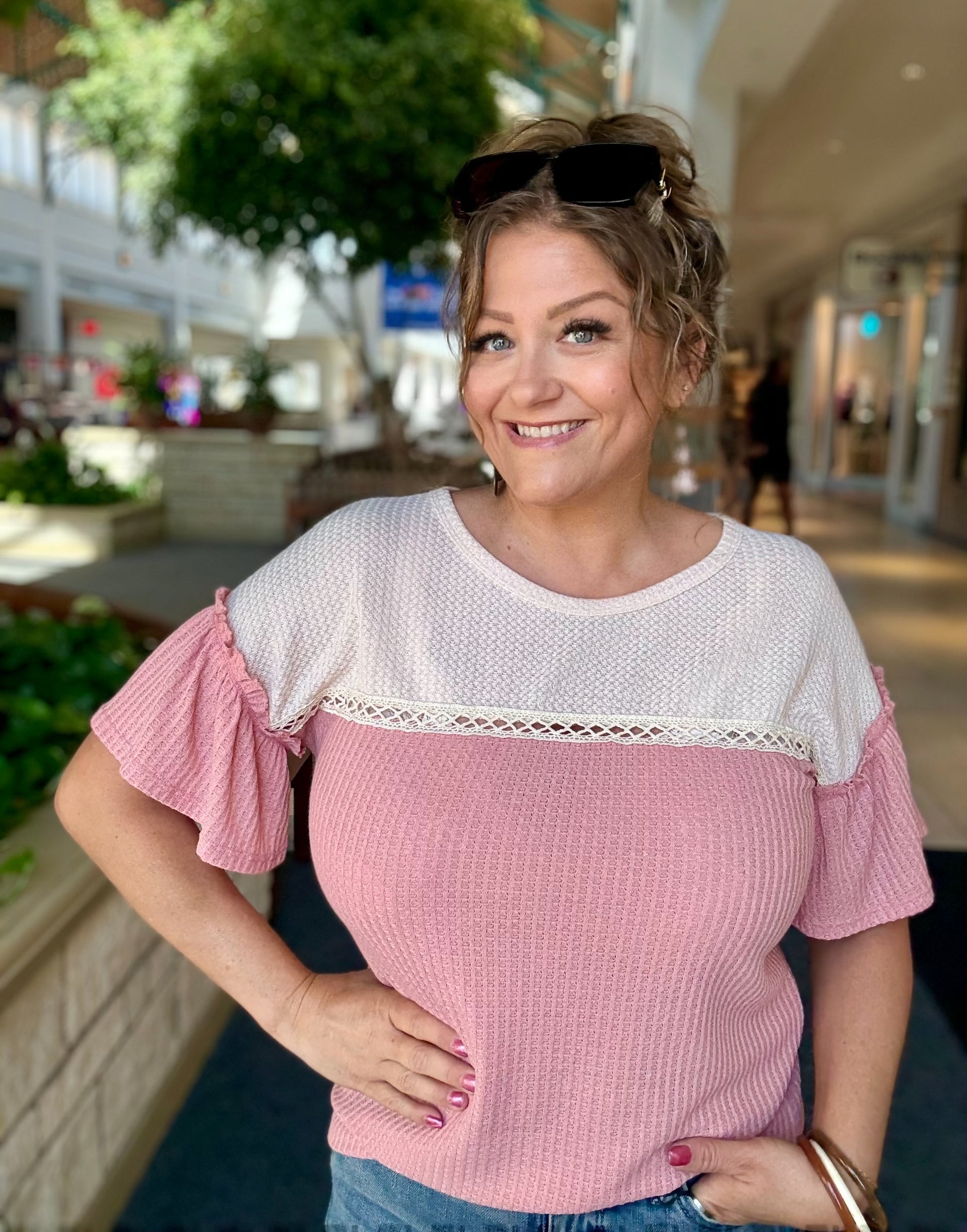 Stay cozy and stylish with our Waffle Knit Color Block top featuring delicate Crochet Lace detailing. This unique piece effortlessly combines comfort and elegance for a playful and trendy look. Perfect for any season, add some personality to your wardrobe with this versatile top!