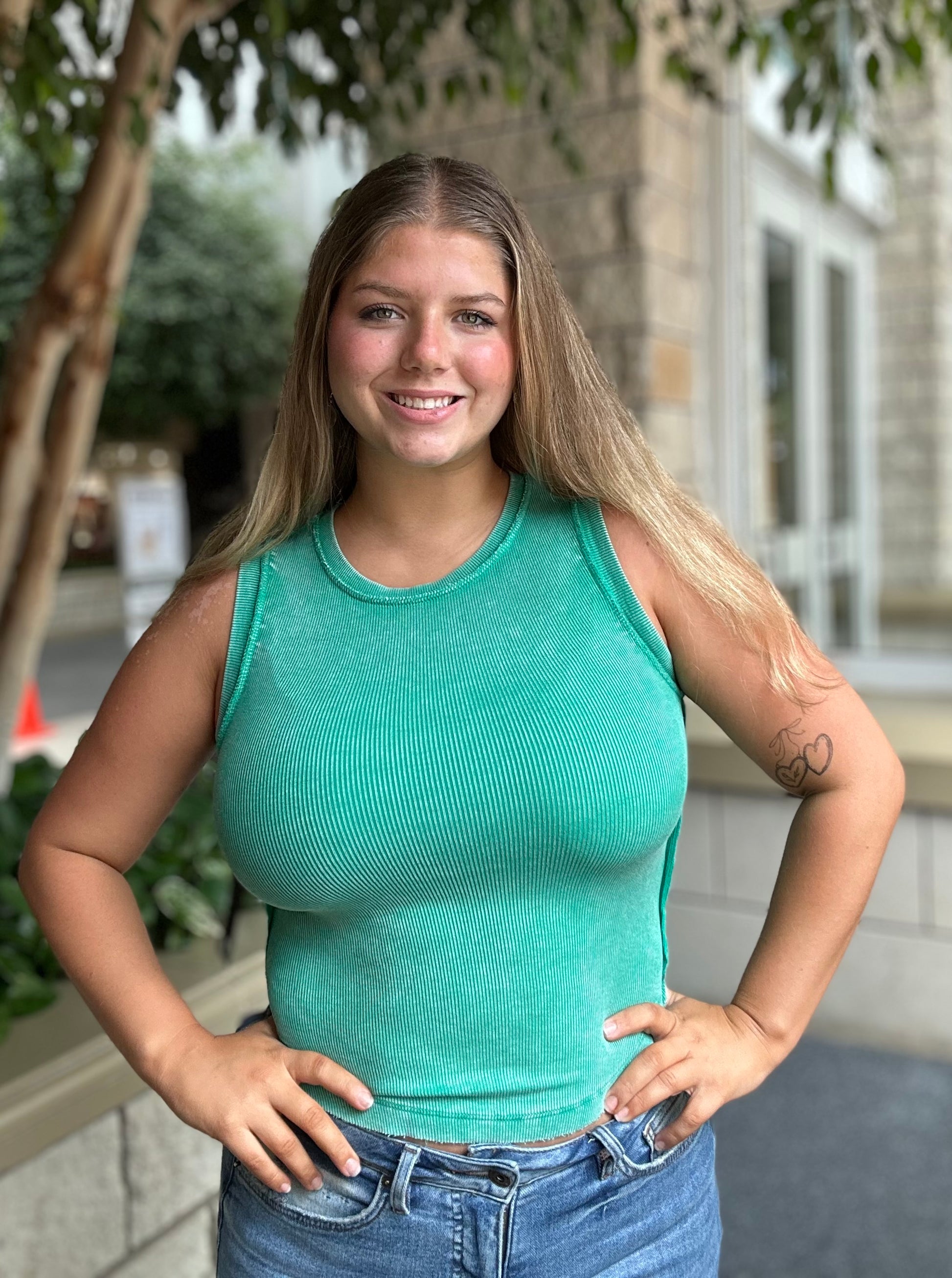Washed Ribbed Sleeveless Tank Top w/ Exposed Seam