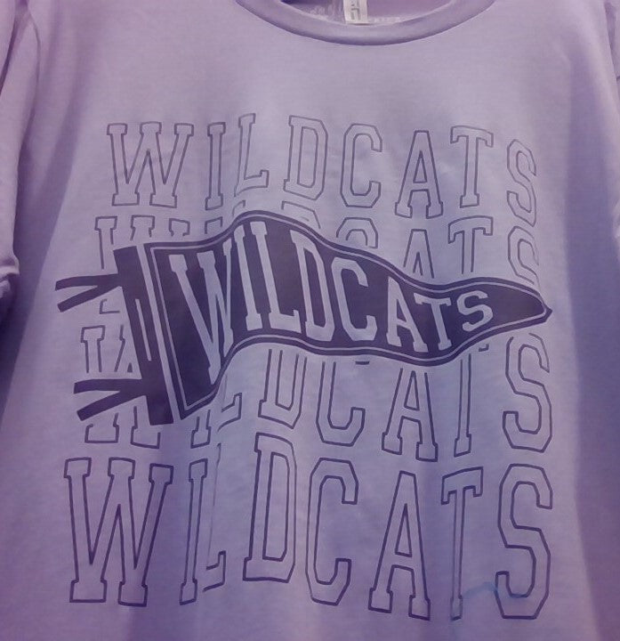 Celebrate your team spirit with this playful long sleeve lavender Bella tee featuring a vibrant Wildcats pennant flag design. Soft and comfortable, it’s perfect for showing off your pride in style while staying cozy all day long.