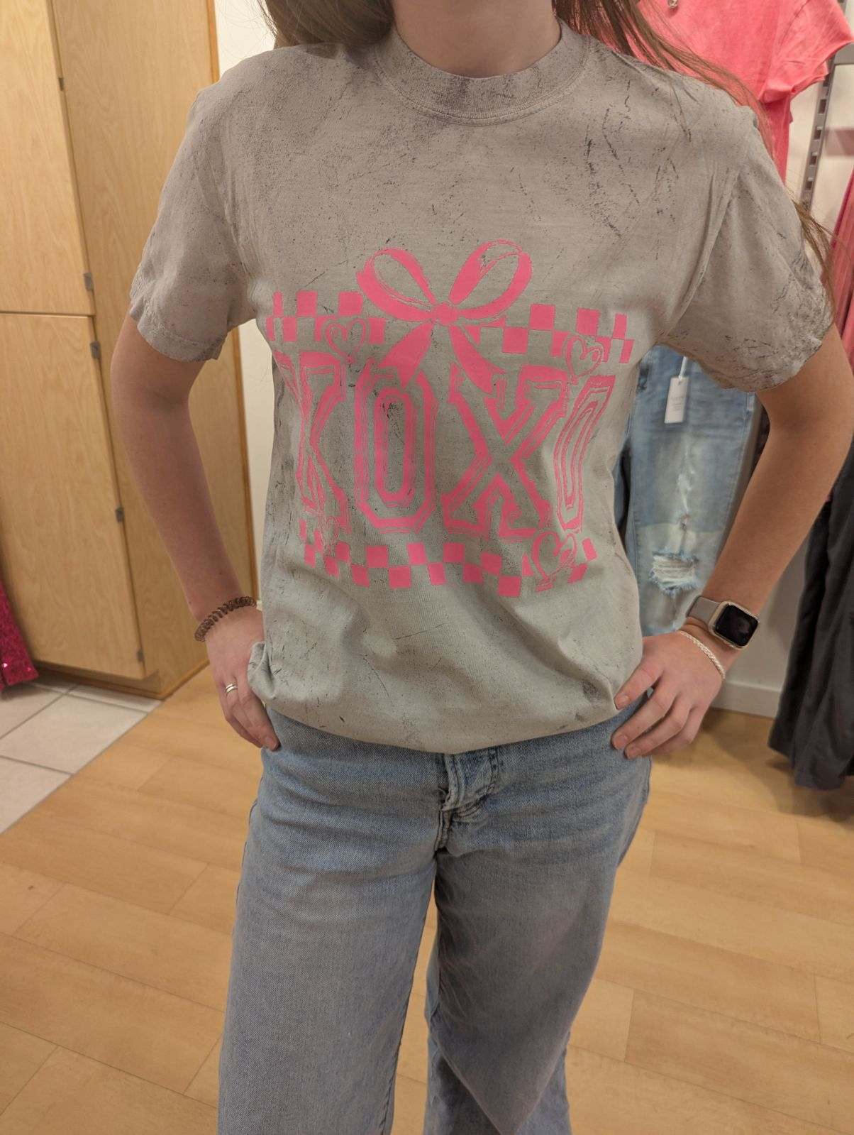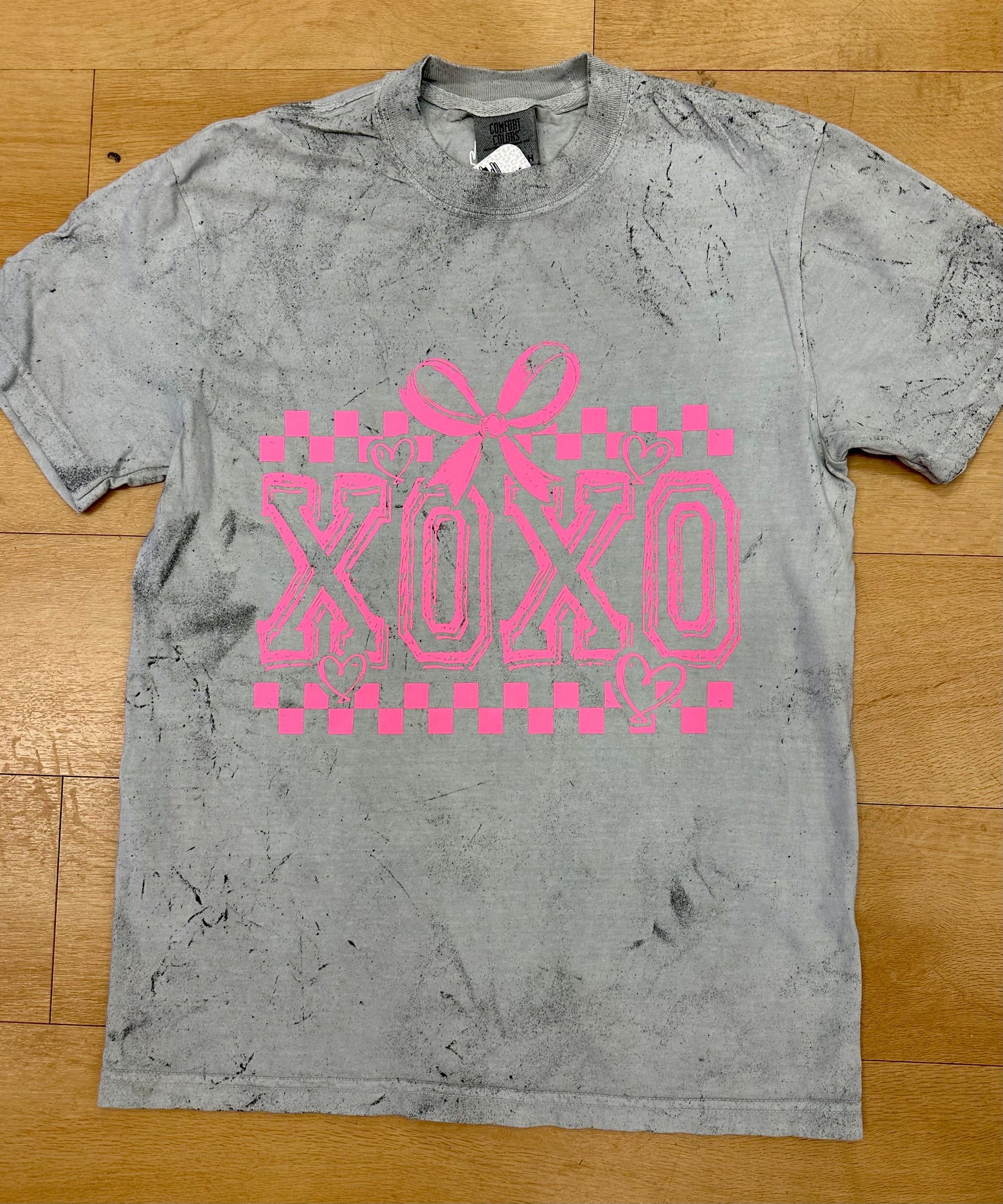 Spread the love with our "XOXO" checkered print t-shirt, featuring an edgy acid wash design. Perfect for adding a touch of playfulness to your wardrobe. Light and comfortable, this shirt is sure to turn heads.