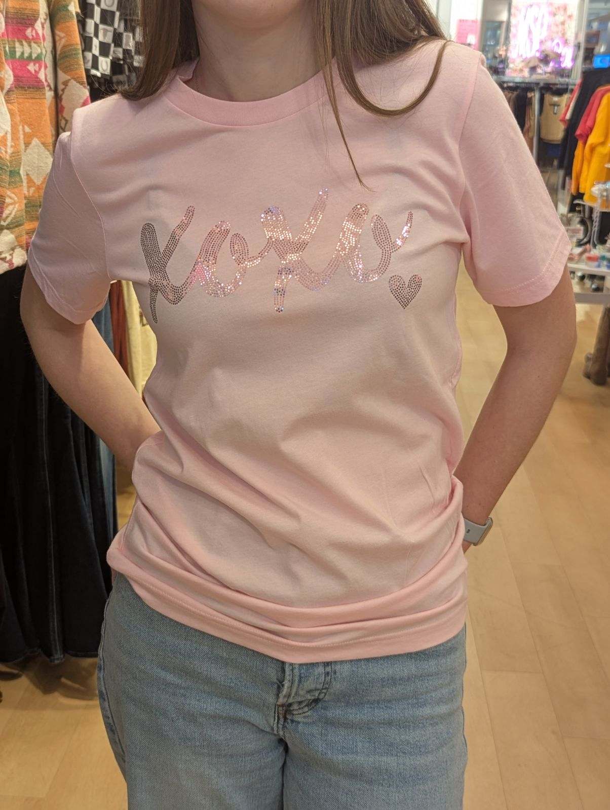 Spread love and sparkle with our "XOXO" graphic T. This playful top features a sparkly "XOXO" design, adding a touch of fun to any outfit. Show off your unique style with this quirky tee. Made for those who know how to have a good time!